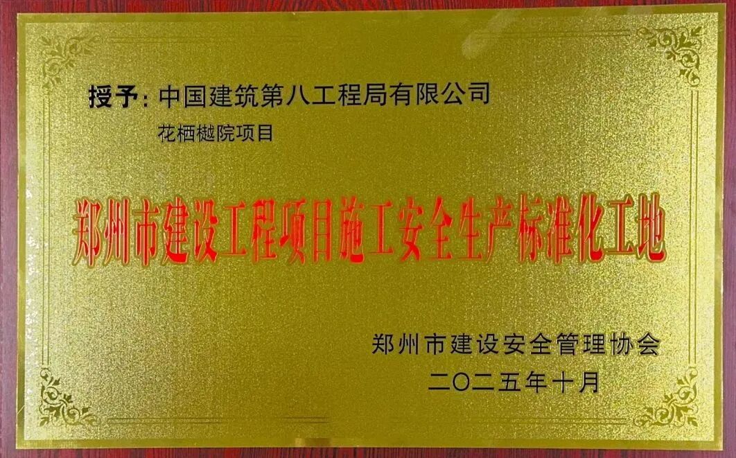 近日,由河南铁建投城发集团投资建设、中建八局承建的铁建投城发·花栖樾项目,凭借其在安全生产管理和文明施工等方面的卓越表现,获评郑州市“建设工程项目施工安全生产标准化工地”。