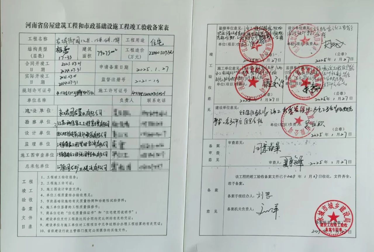 1月27日,春节前最后一个工作日,铁建投城发·龙城御园项目三期二批房屋建筑工程和市政基础设施工程通过永城市城乡建设局竣工验收备案审批,顺利取证!